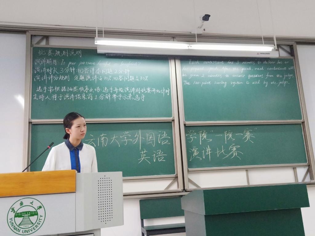 2019年3月29日,太阳成集团tyc122ccvip英语系进行了以“Is Peer Pressure Harmful Or Beneficial?”为主题的英语演讲比赛。本次比赛旨在激发广大同学学习英语的热情,提高同学对英语的兴趣,营造一个良好的英语学习氛围,为更多的同学提供一个尽情挥洒创意、展现英语风采的舞台。英语系的演讲比赛分为五个赛场,英语系共有62名本科生和研究生参赛。公司领导、英语系老师及外教参加了本次活动,担任各赛场的评委。
