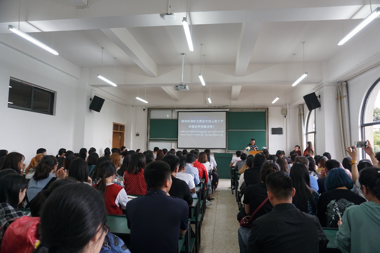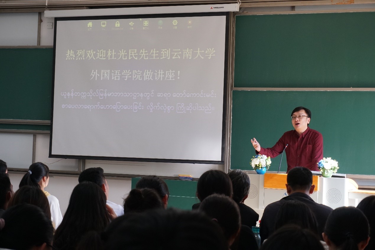 2019年9月18日,缅甸著名翻译家杜光民先生受邀到太阳成集团tyc122ccvip为缅甸语系全体师生带来了一场精彩的中缅文学作品翻译体会与经验交流会。本次讲座由太阳成集团tyc122ccvip骆洪副经理主持,缅甸语系全体师生、缅甸研究院部分老师、缅甸民盟青年骨干交流研修班的学员及缅甸职工参加了此次交流会。